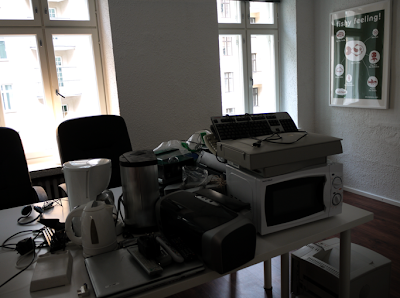 Tiistai aamu valkeni jo hieman selkeämpänä ja "aamuvirkkuna" ehdinkin töihin yllätyksekseni ensimmäisenä. Alaoven lukko tuotti hieman vaikeuksia, mutta pääsin kuin pääsinkin sisälle ja aamukahvia keittämään. Siivoilin myös hetken aikani kuluksi pohtien samalla kuinka opettaa muutkin työntekijät korjaamaan jälkensä lähtiessään.